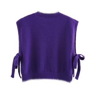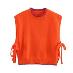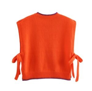 Introducing the Colorful Sleeveless Sweater, available in two stunning variations: bold orange and playful purple. This knitted vest is perfect for adding a pop of color to your wardrobe while keeping cool in warmer weather. Whether you prefer a colorful sweater without sleeves for layering or a standalone piece, this sweater is sure to make a statement.