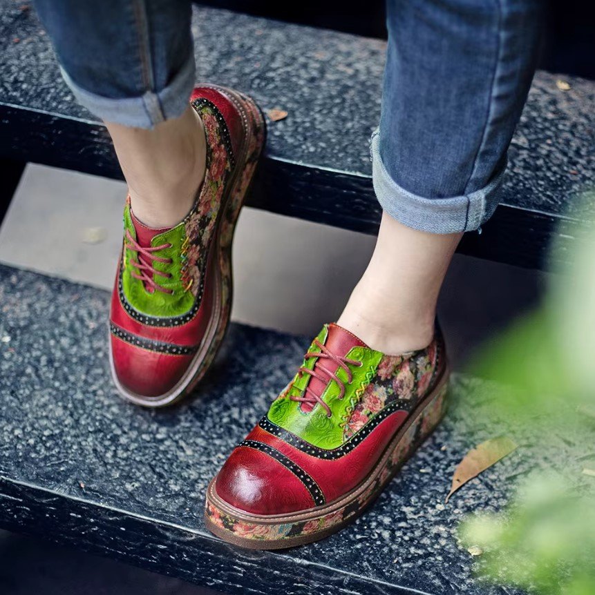 Step back in time with a modern twist! These Retro Colorful Loafers are the ultimate blend of vintage vibes and playful flair, perfect for women who love to make a statement. Featuring a stunning mix of floral patterns, rich red and green leather accents, and brogue-inspired detailing, these colorful loafers for women are anything but ordinary. Whether you’re heading to brunch, a casual outing, or just want to add some retro charm to your look, these loafers will have you strutting in style.