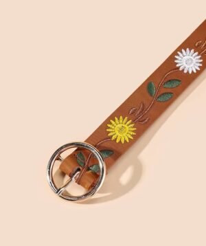 The Western Colorful Belt features beautiful embroidery in various bright hues, including fiery reds, sunny yellows, and cool blues. This eclectic combination of colors brings a vibrant energy to your outfit, making it perfect for anyone looking to add a playful and eye-catching element to their wardrobe. The embroidery adds texture and depth, turning a simple belt into a statement piece.
